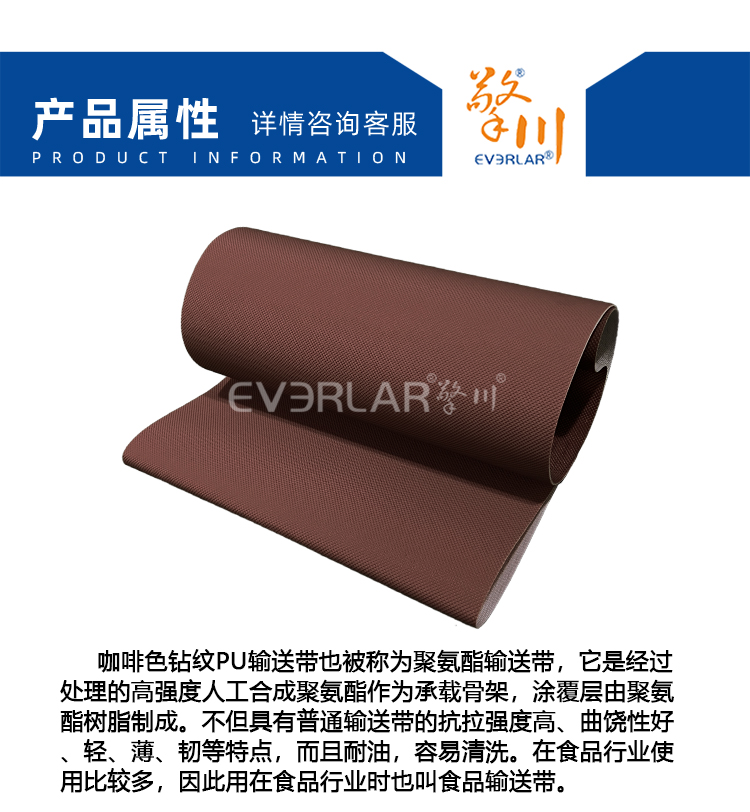 產(chǎn)品名稱:PU輸送帶咖啡色鉆石紋耐磨防滑食品烘焙輸送機(jī)聚氨酯傳送帶廠家