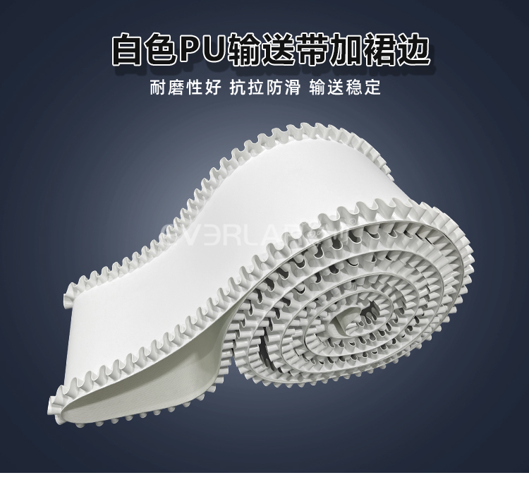 產(chǎn)品名稱(chēng):白色PU輸送帶加裙邊耐磨耐磨食品級(jí)行業(yè)傳送帶聚氨酯皮帶定制