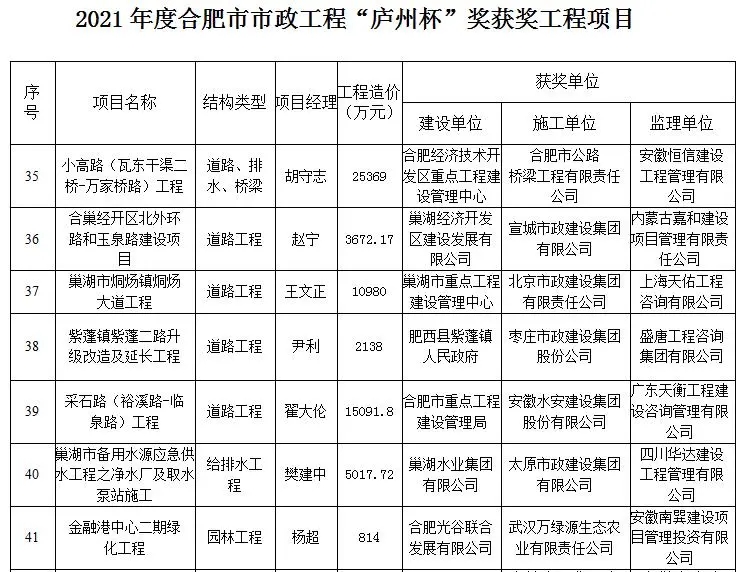 近日,從合肥市市政工程協(xié)會傳來喜訊,集團(tuán)公司在安徽省承建的“紫蓬鎮(zhèn)蓬二路升級改造及延長工程”,獲得合肥市市政工程質(zhì)量獎—“廬州杯”獎。