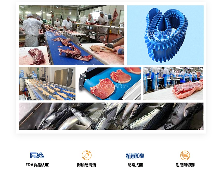 為食品、醫(yī)藥、包裝、日化提供一站式特殊定制食品輸送帶易清潔特性與肉類加工適配性